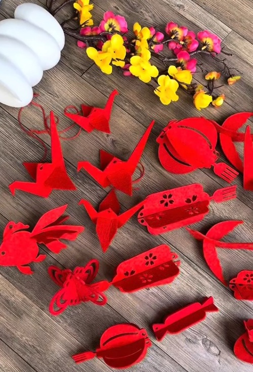 # set trang trí vải dạ # set trang trí vải nỉ # set trang trí cây mai cây đào # set trang trí tết